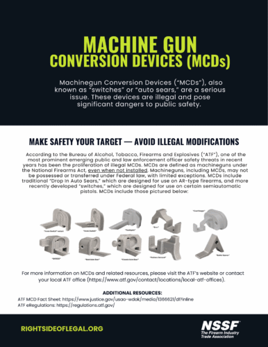 Law enforcement notes that there has been increasing numbers of illegal MCDs recovered at crime scenes. NSSF, and the firearm manufacturers, retailers, and ranges we represent, all want firearms of all sorts to remain beyond the reach of those who should never possess them. That includes criminals who illegally modify firearms as well as those that use firearms for illicit means.